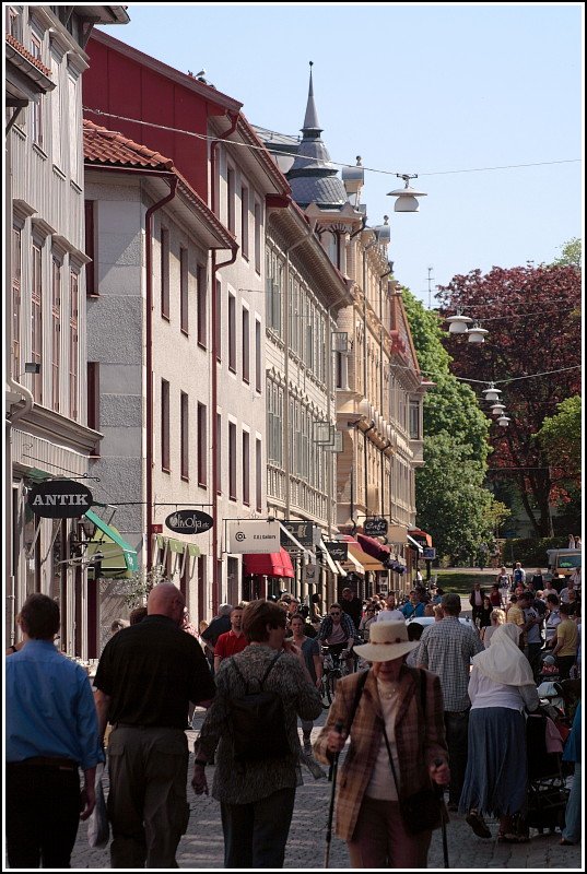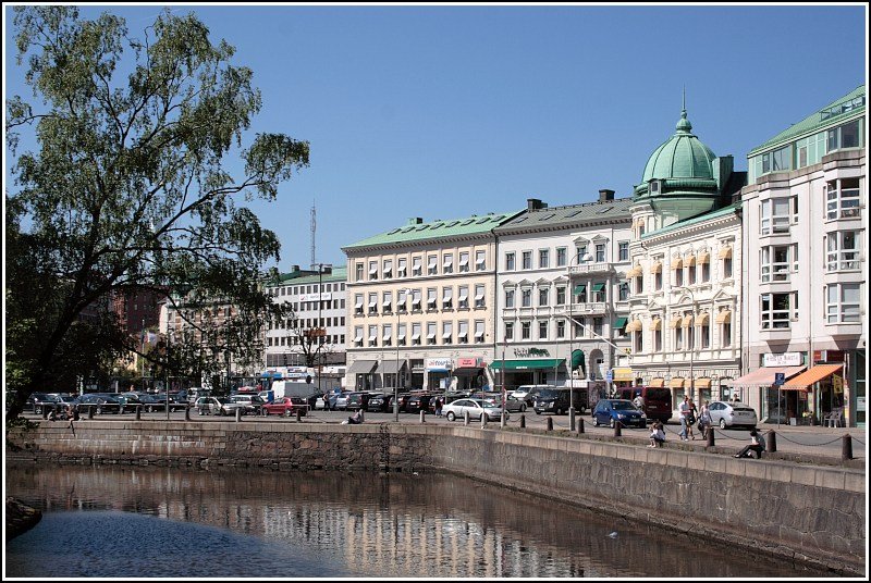Göteborg ist mit seiner Gründung im Jahr 1621 eine im europäischen Vergleich recht junge Stadt. Einige Häuser an der Norra Hamngatan stammen aus dieser Zeit. Auf dem Foto vom 10.05.2008 sind v.l.n.r. das Stadtmuseum, die Christinae-Kirche und das Rathaus zu sehen, dessen Haupteingang sich am Gustav Adolfs Torg befindet.