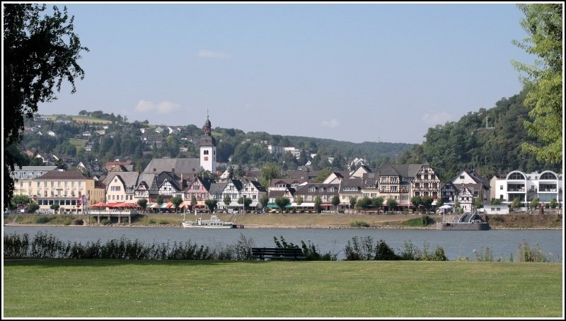 Die St. Marien Kirche und ein Teil der Uferpromenade von Bad Breisig. 15.08.2008