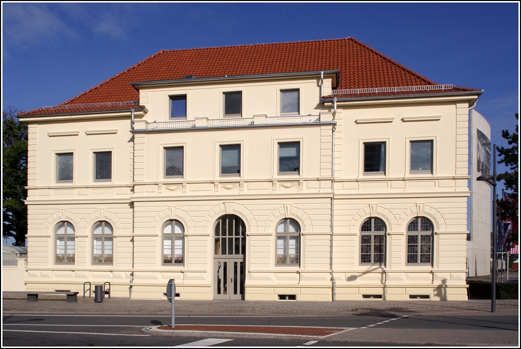 Direkt an der Weser liegt die Zentrale der Deutschen Gesellschaft zur Rettung Schiffbrüchiger (DGzRS). Hier ist auch die Seenotleitung untergebracht, die den Einsatz der Seenotkreuzer und Seenotrettungsboote koordiniert. Links im Bild überragt der ehemalige Wasserturm die Bäume. 23.05.2010