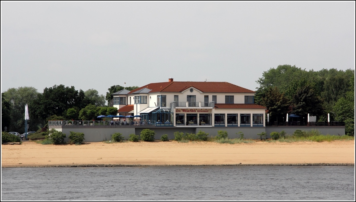 Hier ein Blick auf das Hotel Kranich mit Anlegestelle des Fahrgastschiffes "Gera".