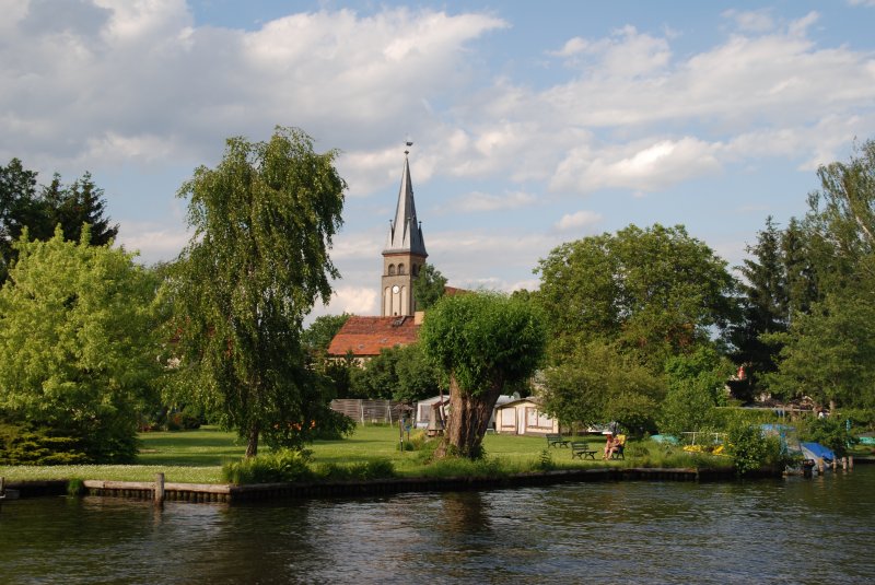 BERLIN, 24.05.2009, Kirche im Ortsteil Rahnsdorf, von der Spree aus gesehen