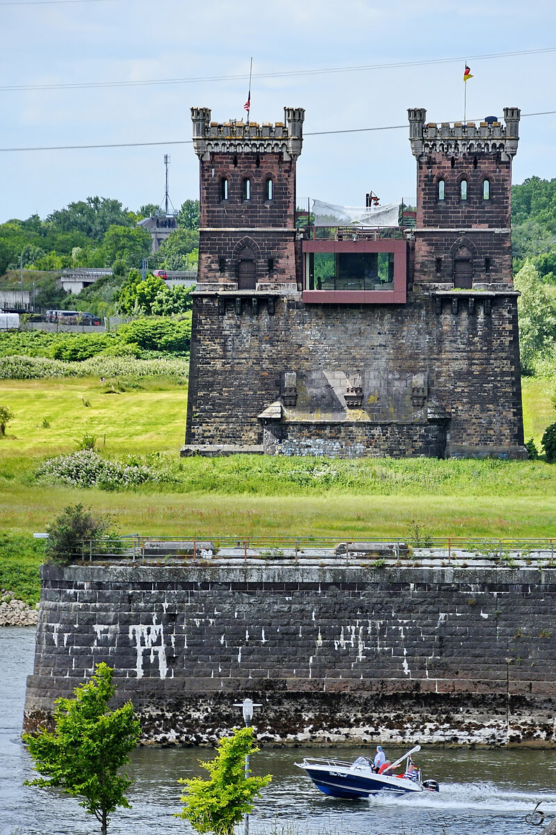 Im Bild der alte Brückenpfeiler der ersten Duisburg-Hochfelder Eisenbahnbrücke, welcher augenscheinlich wieder als Wohnraum (?) genutzt wird. Zumindest ist ein langes Sofa zu erkennen. (Duisburg, Mai 2025) Christian Bremer