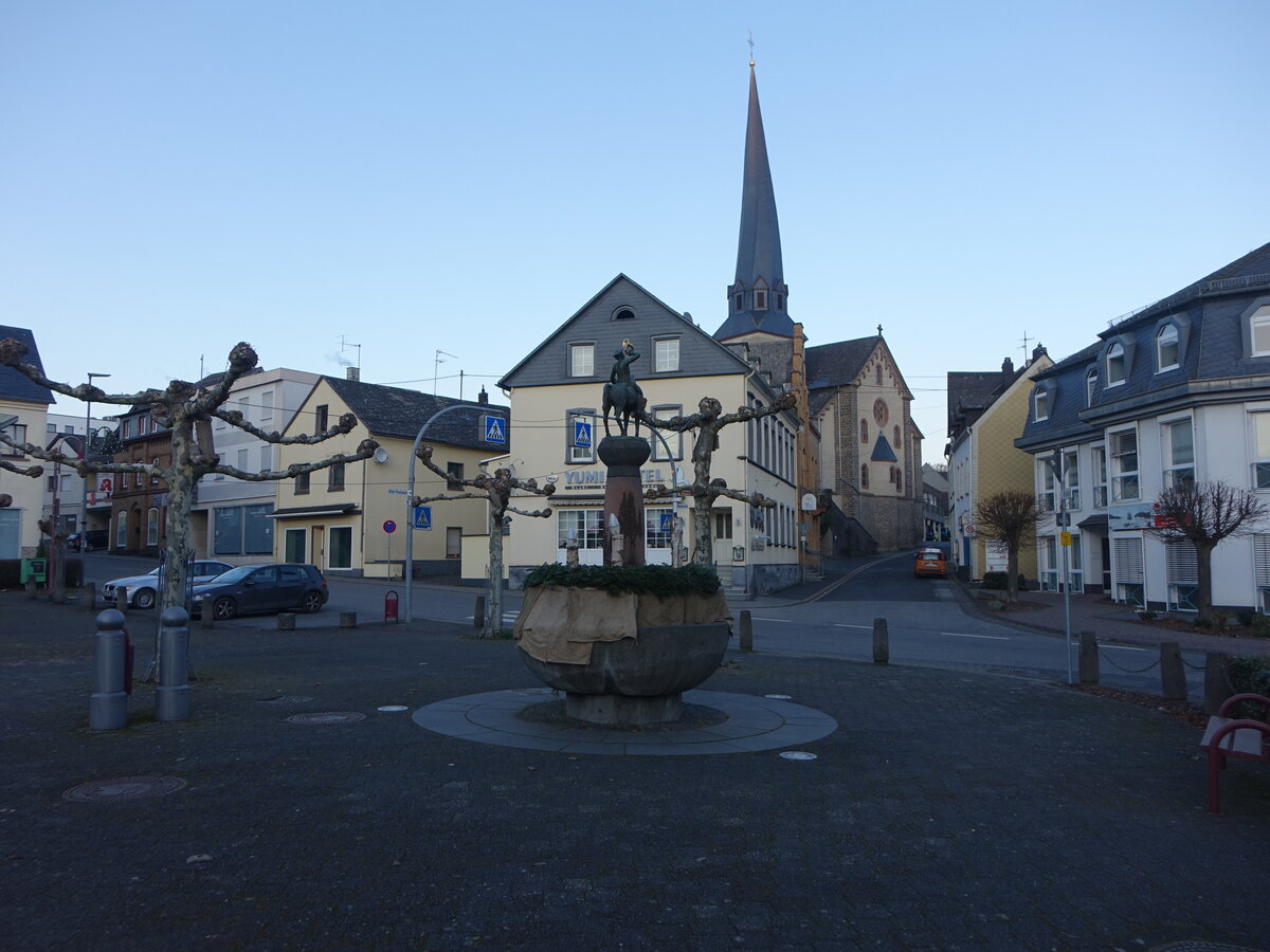 Kaiseresch, Depeschenreiterbrunnen und Häuser in der Koblenzer Straße (25.12.2025)
