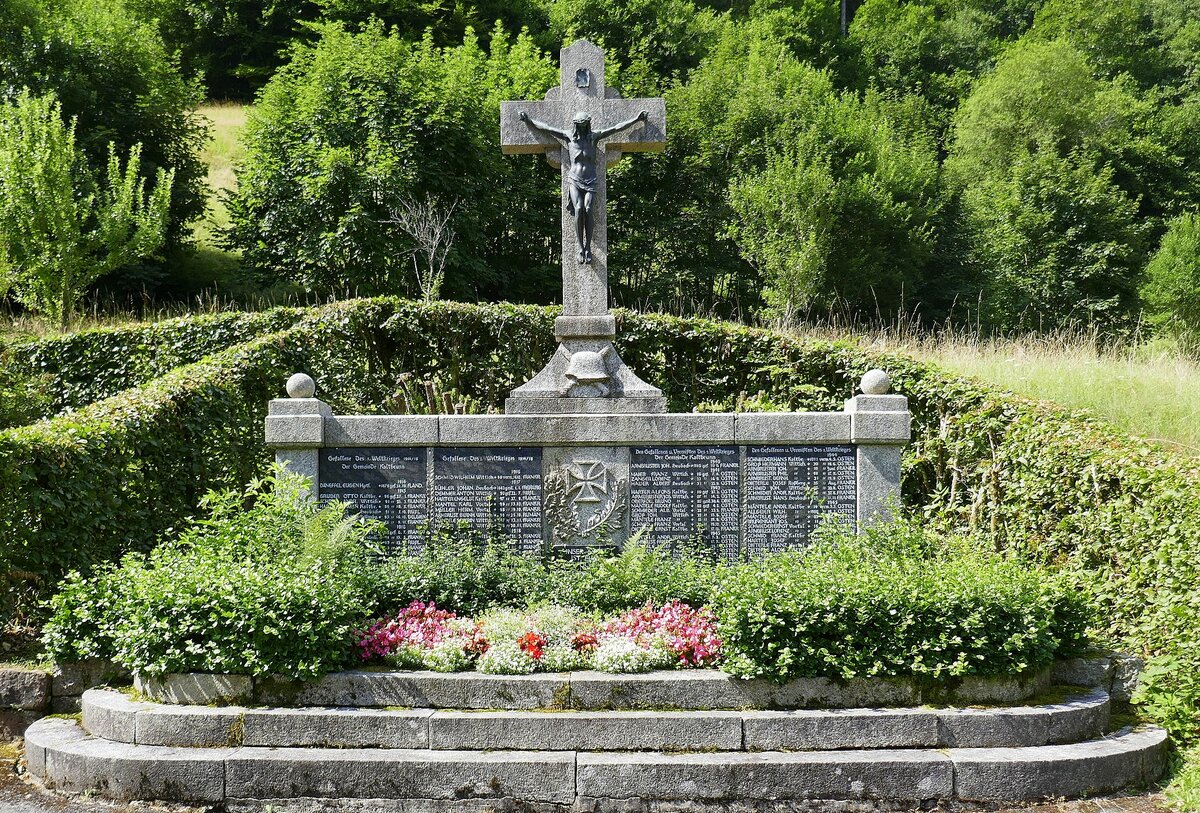 Wyhl, außerhalb des Ortes am Altrhein steht die 1993 aufgestellte Gedenktafel, sie erinnert an die Auswanderung von 42 Personen 1842 aus dem Ort, in den tropischen Regenwald von Venezuela, dort gründeten sie die deutsche Kolonie "Colonia Tovar", die bis heute besteht, Juni 2025