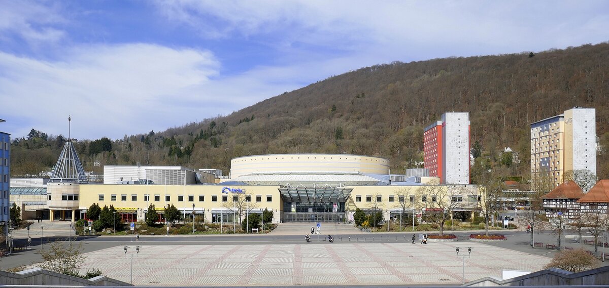 Suhl, der Platz der Deutschen Einheit mit dem Congress Centrum, April 2025