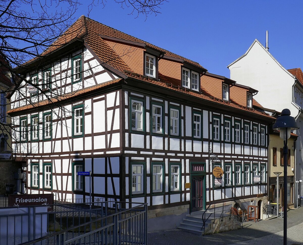 Suhl, Thüringer Fachwerkhaus in der Innenstadt, April 2025