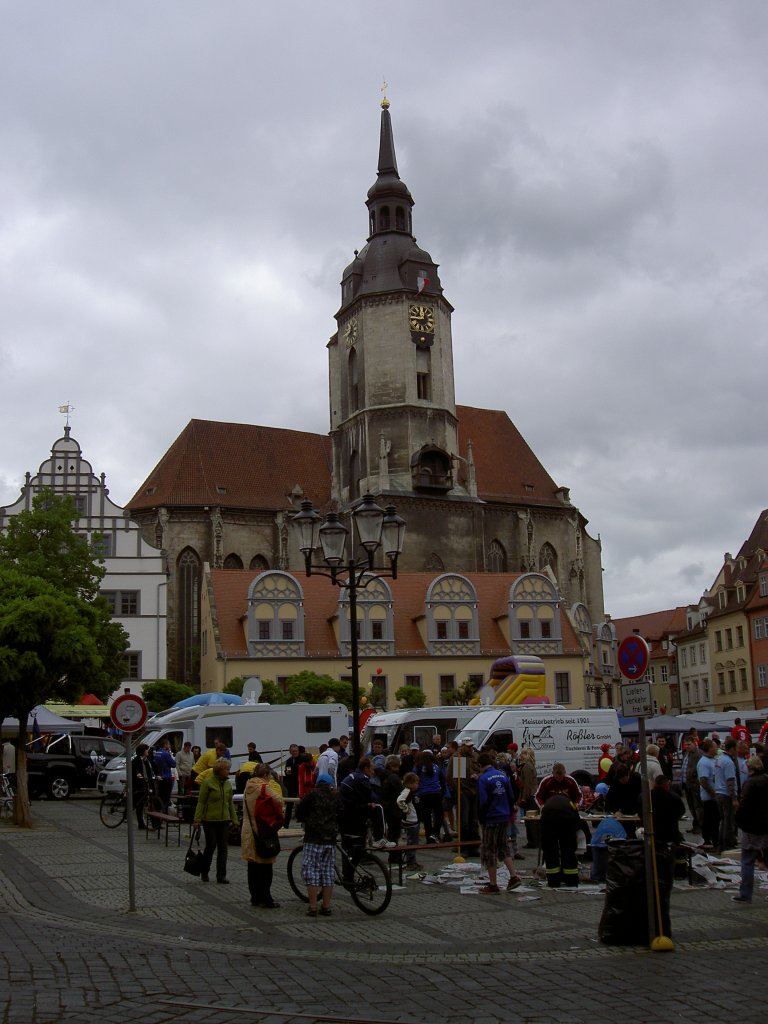 Naumburg, Wenzelskirche am Markt, spätgotisch, erbaut ab 1426, Kirchturm 72 Meter hoch (13.05.2012)