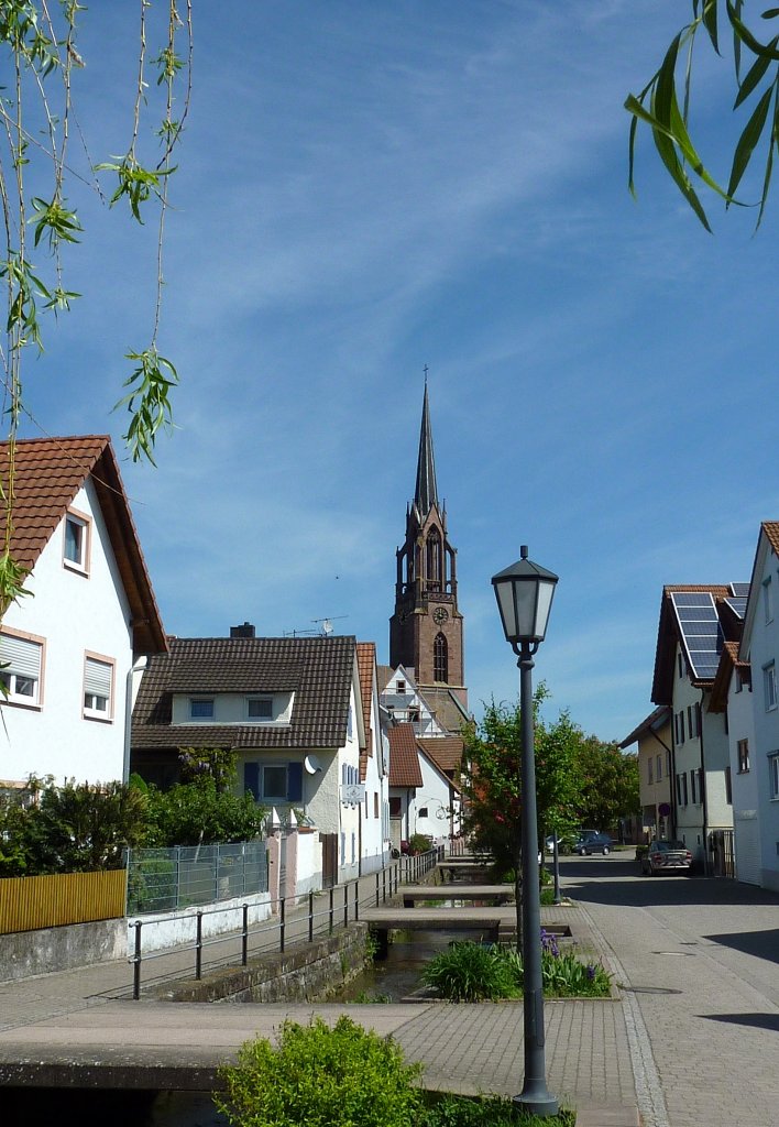 Köndringen, Blick zur evangelischen Kirche, Mai 2012