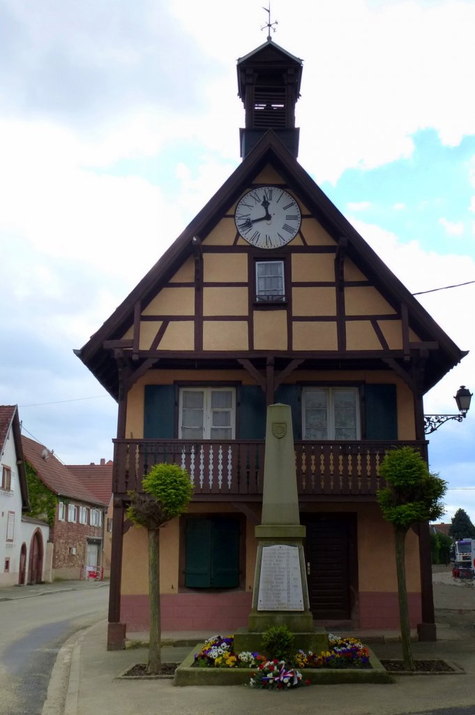 Gerstheim im Unterelsaß, historisches Fachwerkgebäude aus dem 18.Jahrhundert im Ortszentrum, Mai 2013