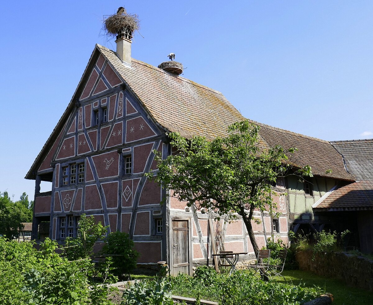 Ungersheim im Elsaß, ECO-Museum, Wohnhaus um 1660 aus dem Sundgau, wurde dort 1988 abgebaut und anschließend im Museum wieder errichtet, Mai 2025 rainer ullrich