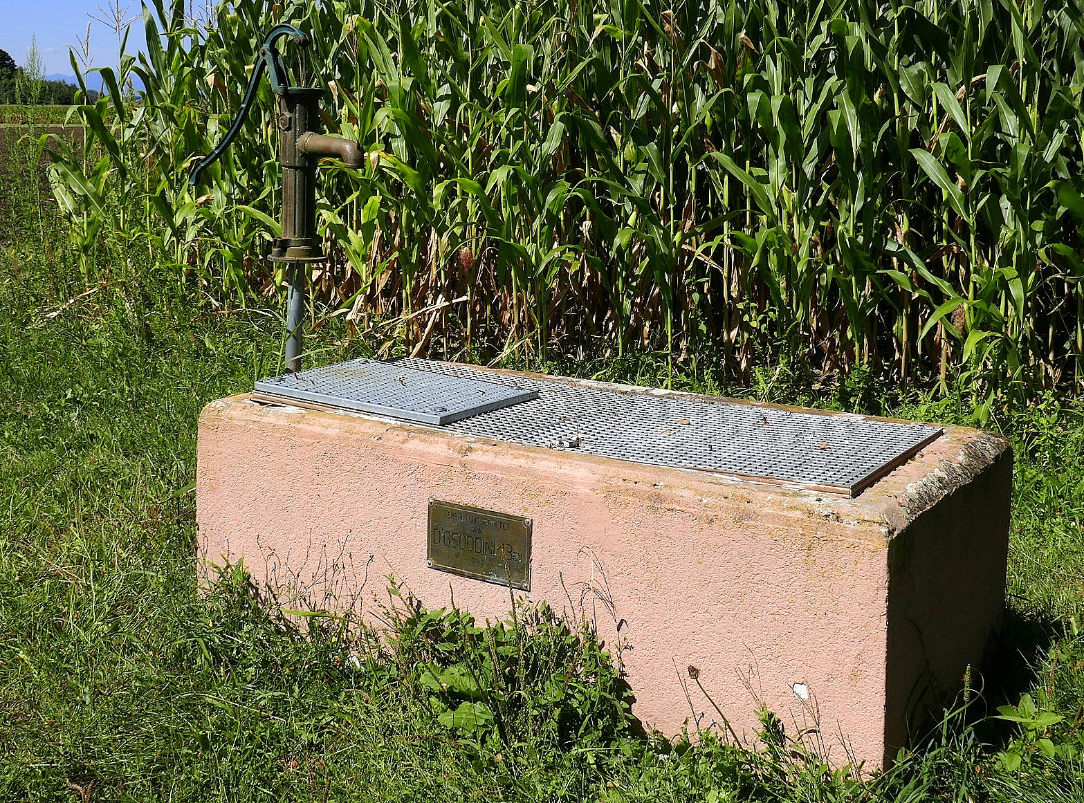Forchheim in der Rheinebene, kleiner Brunnen außerhalb des Ortes, gestiftet und erbaut 1997 von einer Jugendgruppe aus dem Ort, Aug.2025 rainer ullrich