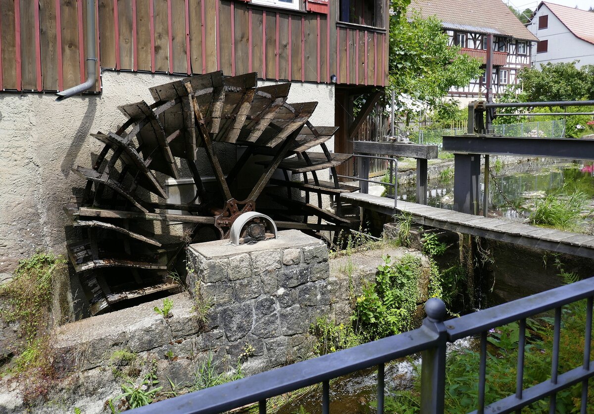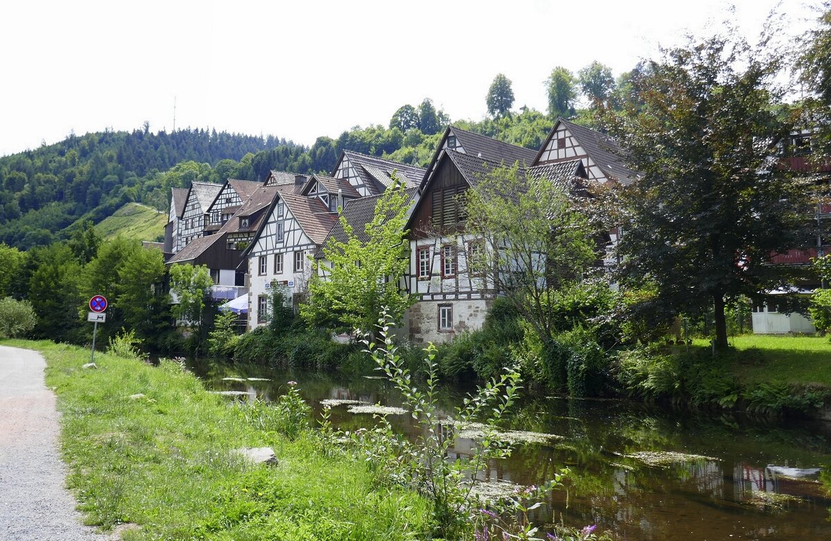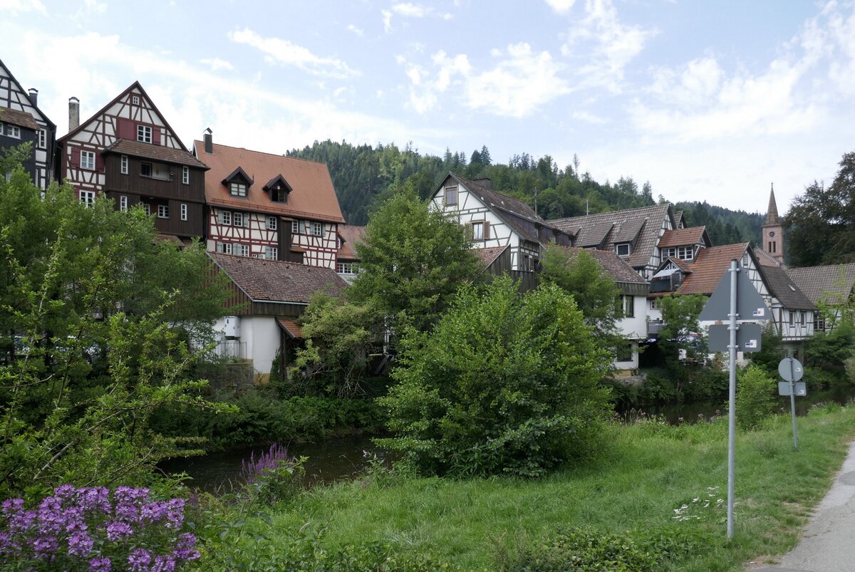 Schiltach, der Holzstamm steht als Technisches Denkmal für die lange Tradition der Flößerei, ein sogenannter "Holländer", der als Mast für die Segelschiffe diente, die in Holland damals gebaut wurden, Mindestlänge war 18,60m und 48cm Durchmesser, Juli 2025