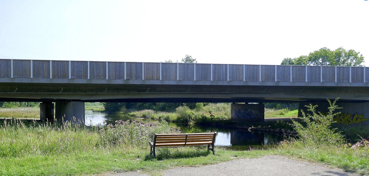 Donaueschingen, die Straßenbrücke der B27 ist die aller erste Donaubrücke, über die kurz vorher beginnende Donau, wie viele mögen es sein, auf dem 2857 Km langen Weg bis zum Schwarzen Meer ? Aug.2025 rainer ullrich