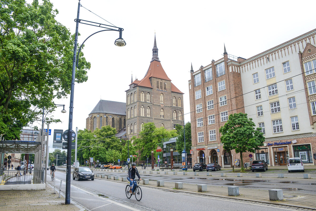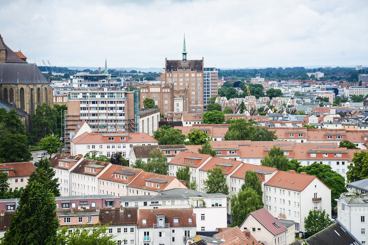 Hotel Neptun vom Warnemünder Strand aus gesehen. Neben den einheimischen Urlaubern übernachteten auch Geschäftsleute aus dem Westen gern in dem Prestige-Objekt. Hinzu kamen Staatsgäste wie Fidel Castro, aber auch westdeutsche Politiker wie Uwe Barschel und Willy Brandt. Für die Staatssicherheit der DDR war das eine gute Gelegenheit, Informationen zu sammeln. Das Hotel Neptun hieß im Volksmund »Stasi-Hotel« hieß. Aufnahme: 8. Juni 2025.