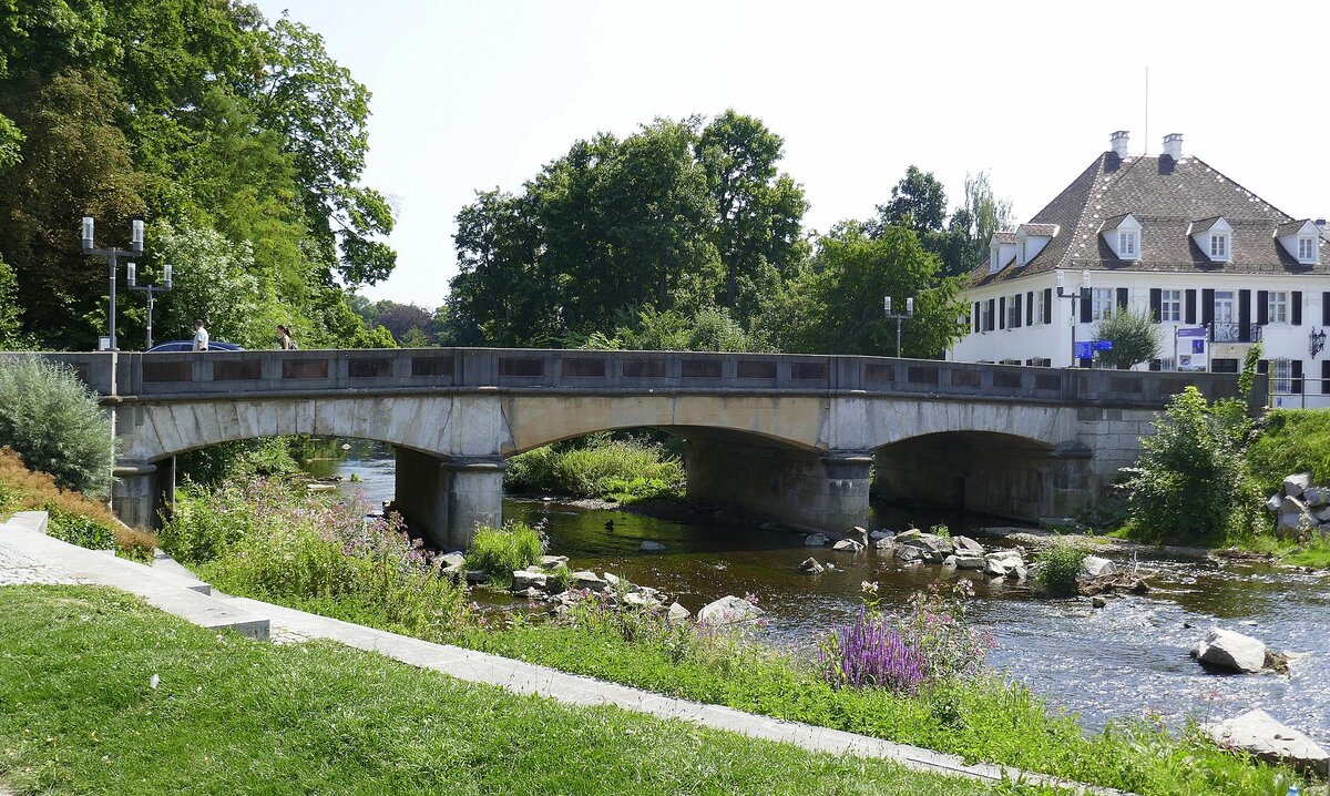 Sie überspannt die Saale und verbindet die Peißnitzinsel mit der Ziegelwiese. 2022 wurde die Brücke saniert. So leer ist sie selten – hier herrscht reger Rad- und Fußverkehr. Ein passender Moment fürs Foto wurde abgewartet.