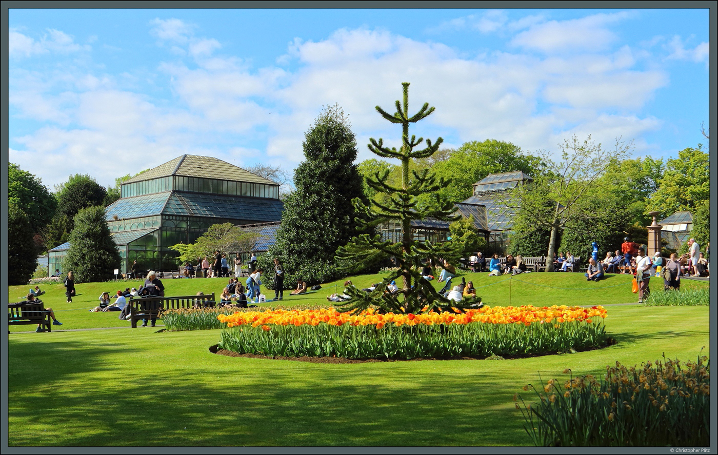 Am 07.05.2025 lockt das sommerlich-warme Wetter viele Besucher in den Botanischen Garten von Glasgow.