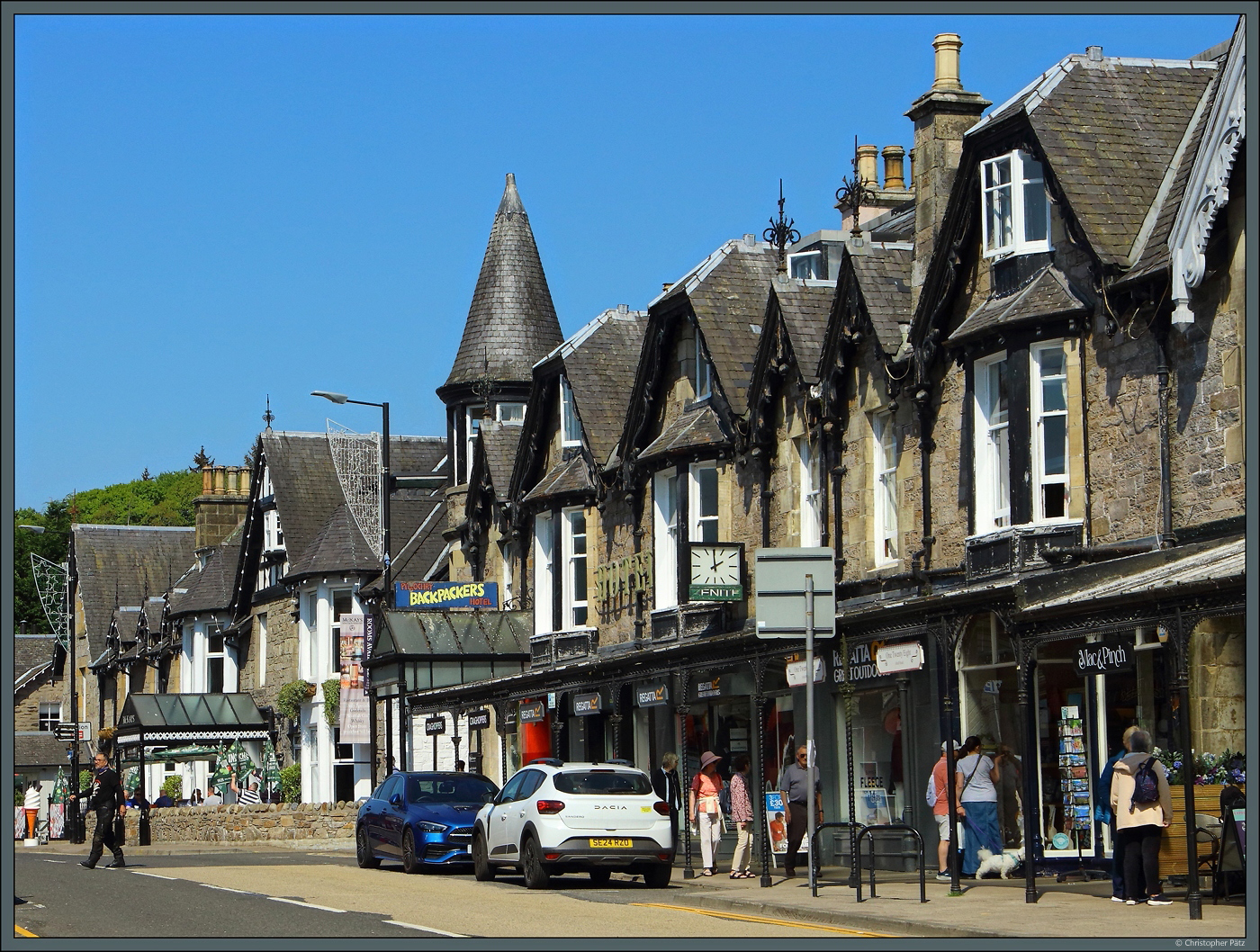 Pitlochry ist seit dem 19. Jahrhundert ein Touristmuszentrum in den Highlands Schottlands. An der Atholl Road reihen sich zahlreiche viktorianische Hotelbauten aneinander. (12.05.2025)