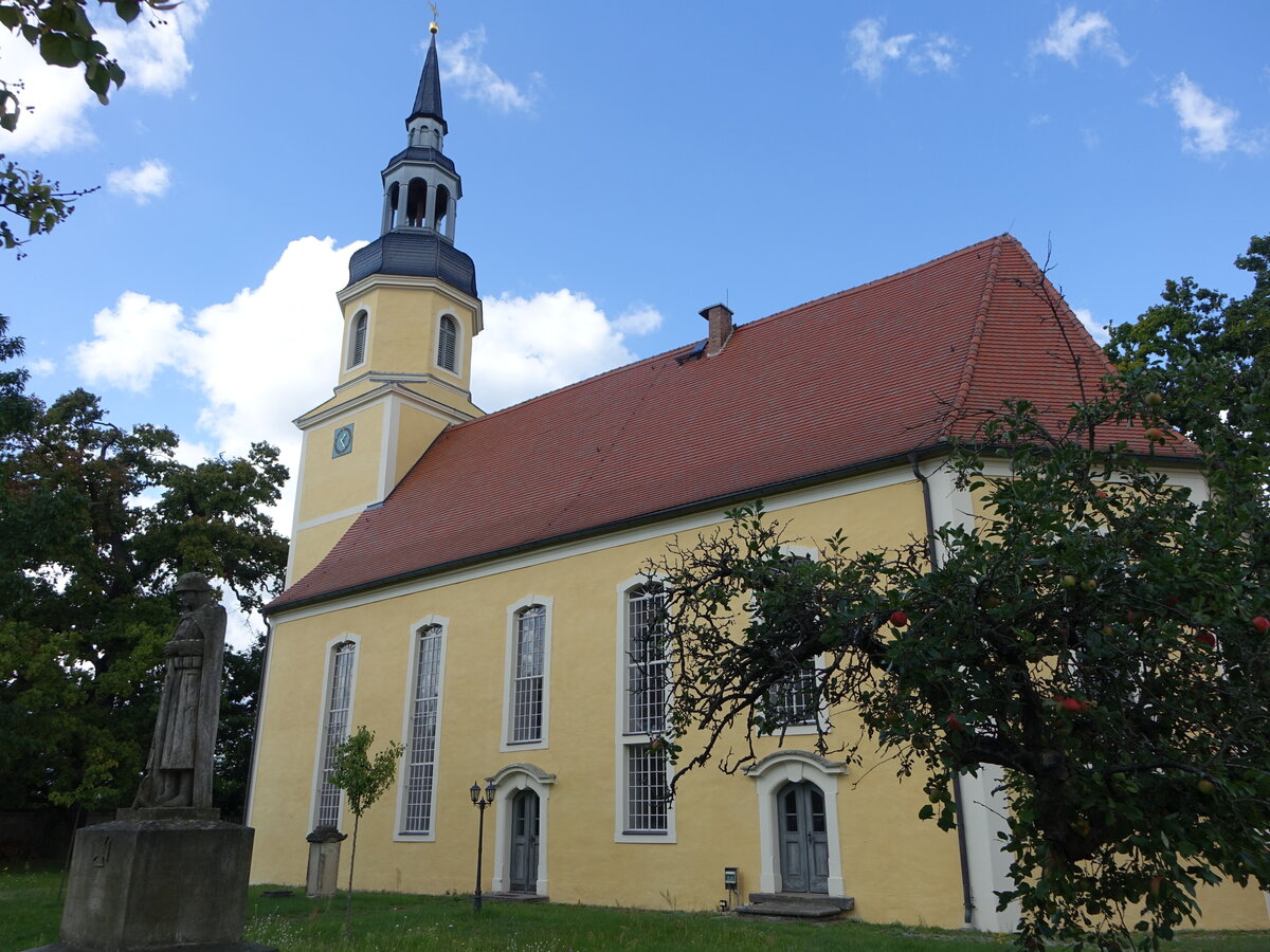 Lebusa, evangelische Kirche, erbaut von 1725 bis 1727 nach einem Entwurf von Matthäus Daniel Pöppelmann (08.09.2025)