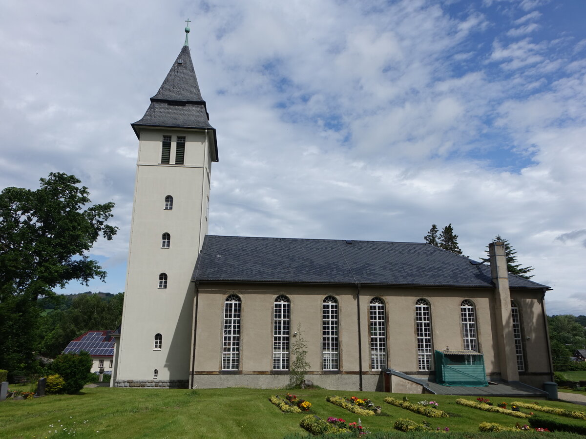 Cunnersdorf, evangelische Kirche, erbaut von 1906 bis 1907 durch den Architekten Woldemar Kandler (07.06.2025)