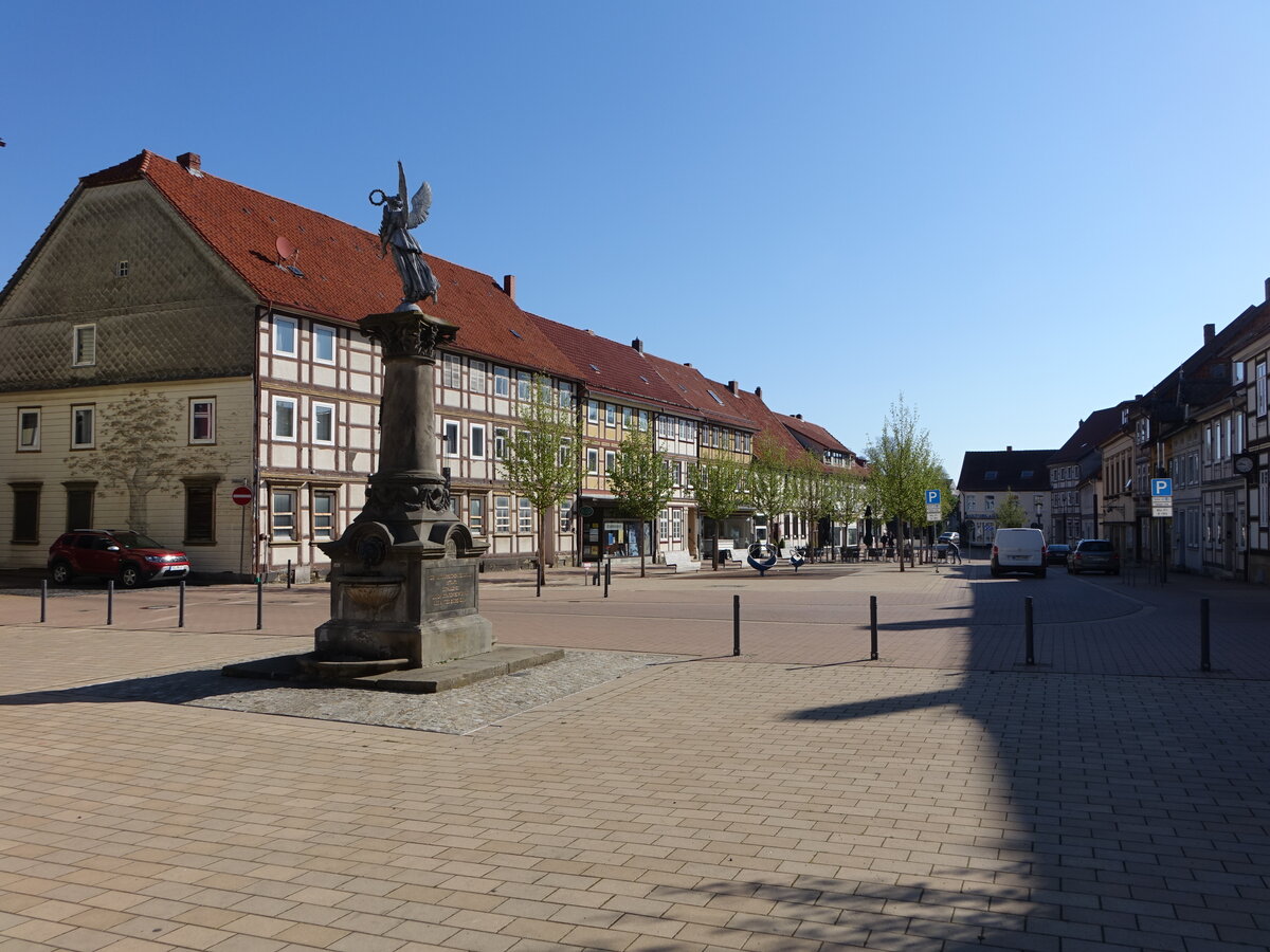 Bockenem, Denkmal und Fachwerkhäuser am Buchholzmarkt (20.04.2025)