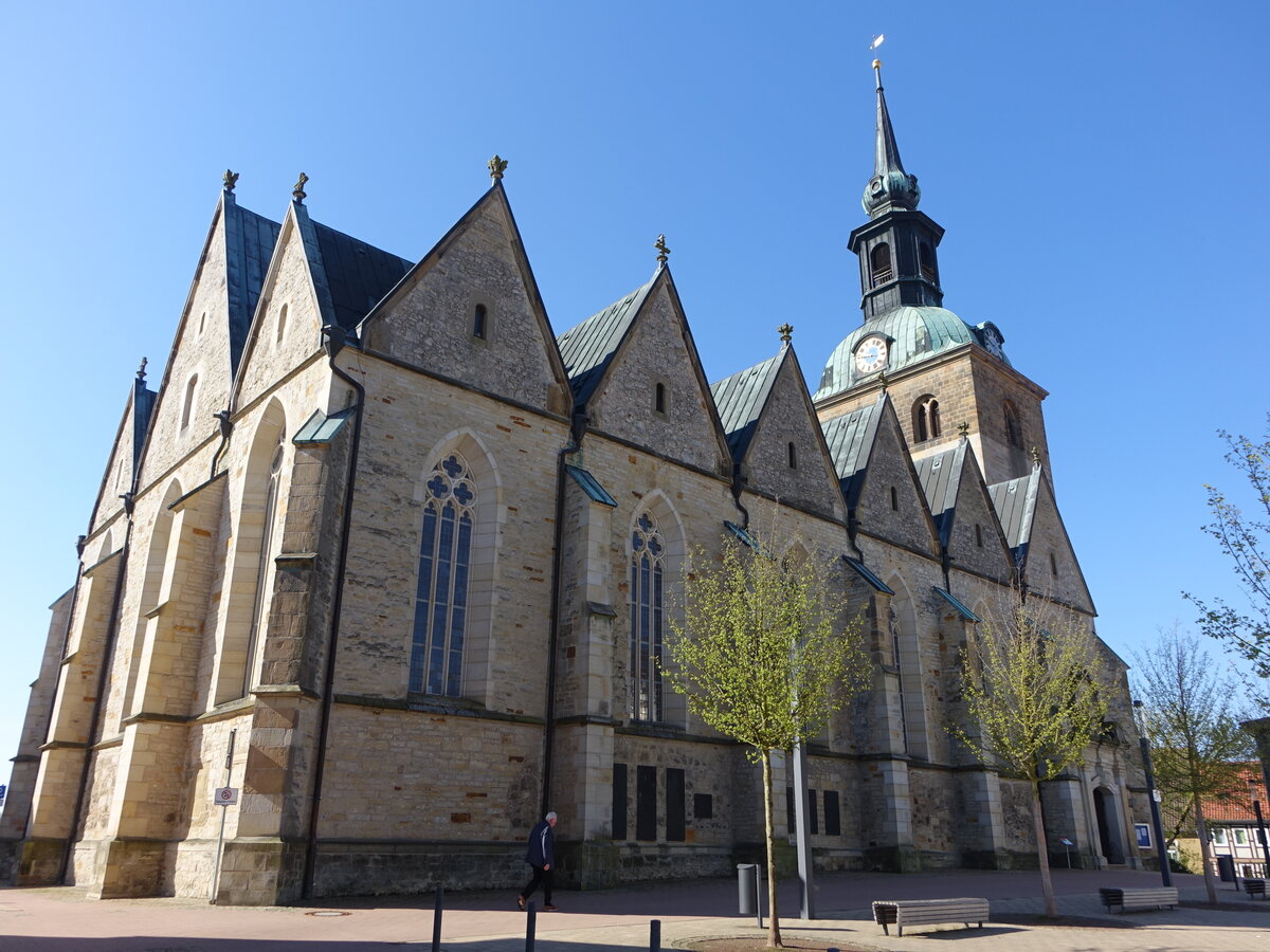 Bockenem, evangelische Pfarrkirche St. Pankratius, spätgotische Hallenkirche erbaut bis 1403 (20.04.2025)