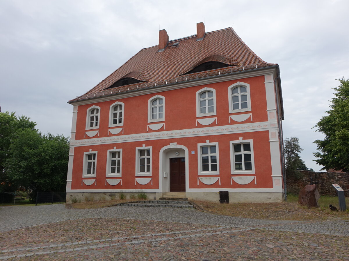 Calau, Burglehnhaus, zweigeschossigen Ziegelbau mit Walmdach, erbaut 1716 (08.06.2025)
