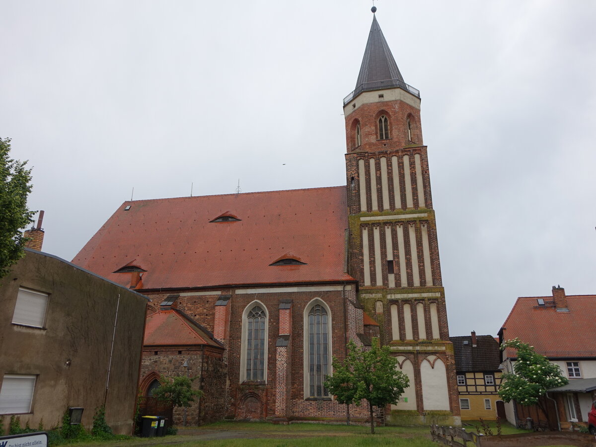 Calau, evangelische Stadtkirche, spätgotischer Backsteinbau, erbaut im 13. Jahrhundert (08.06.2025)