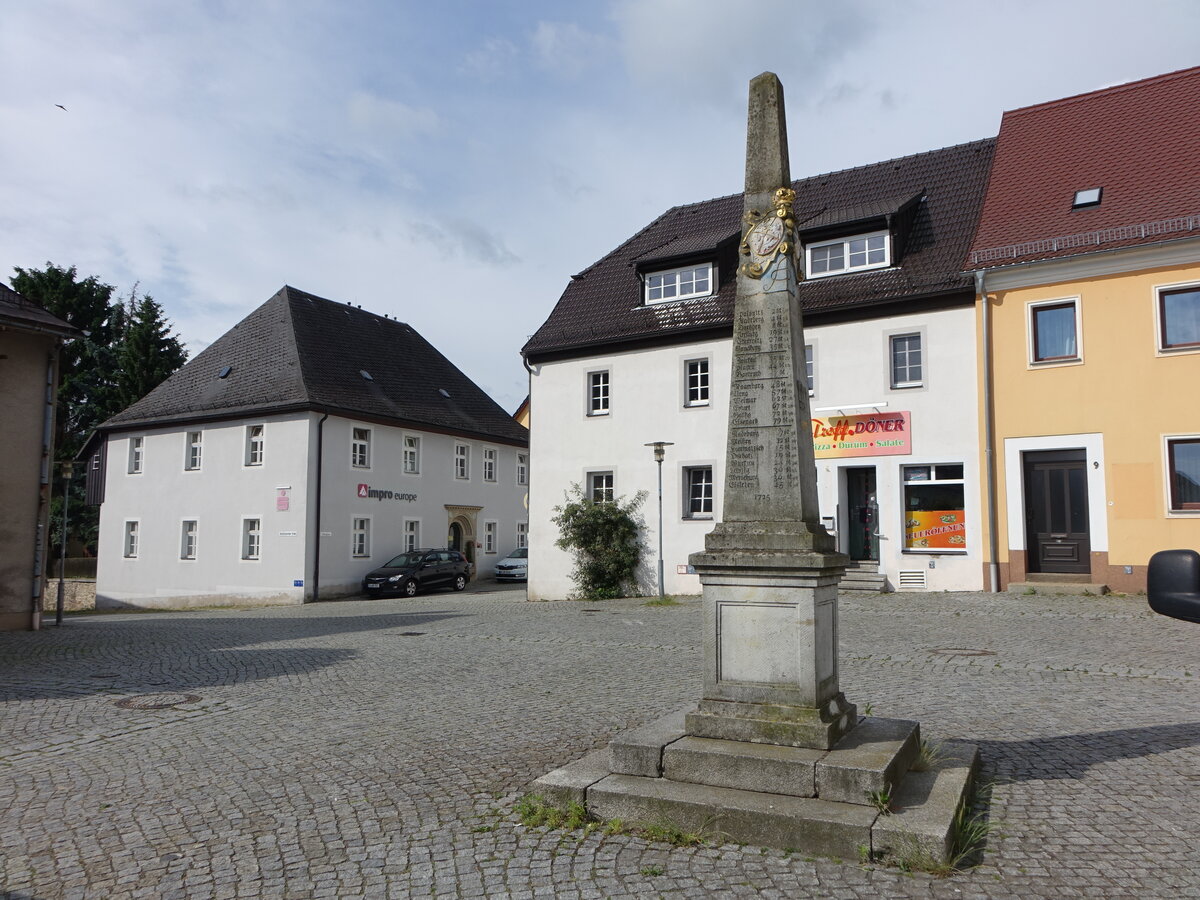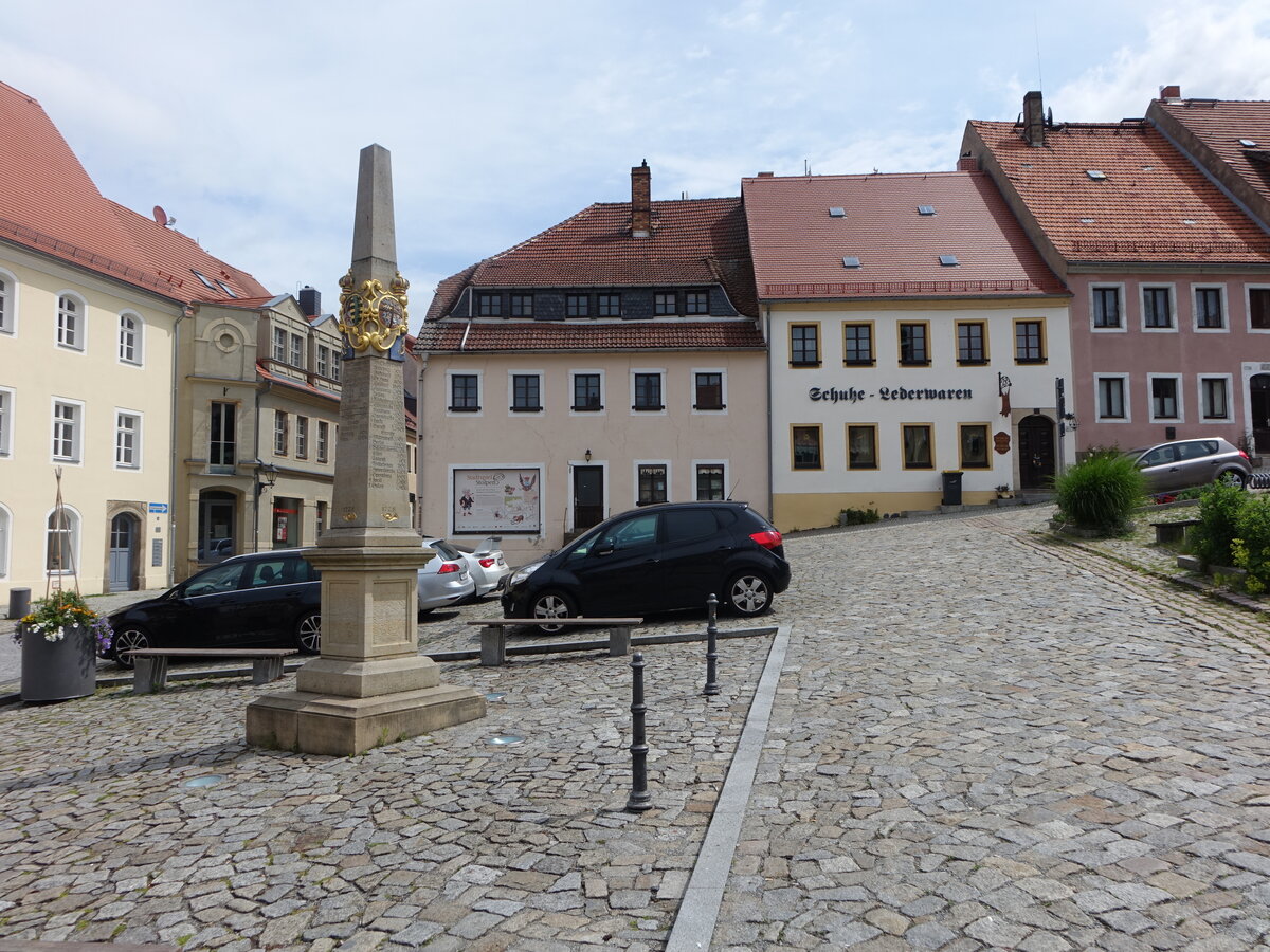 Königsbrück, Denkmal und Häuser in der Schloßstraße (07.06.2025)