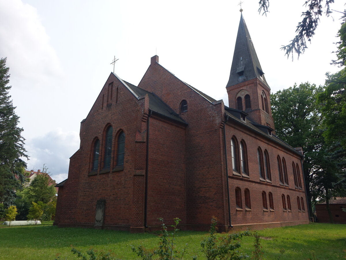 Groß Luja, evangelische Kirche, erbaut von 1898 bis 1899, neugotische Saalkirche aus Backstein (08.06.2025)
