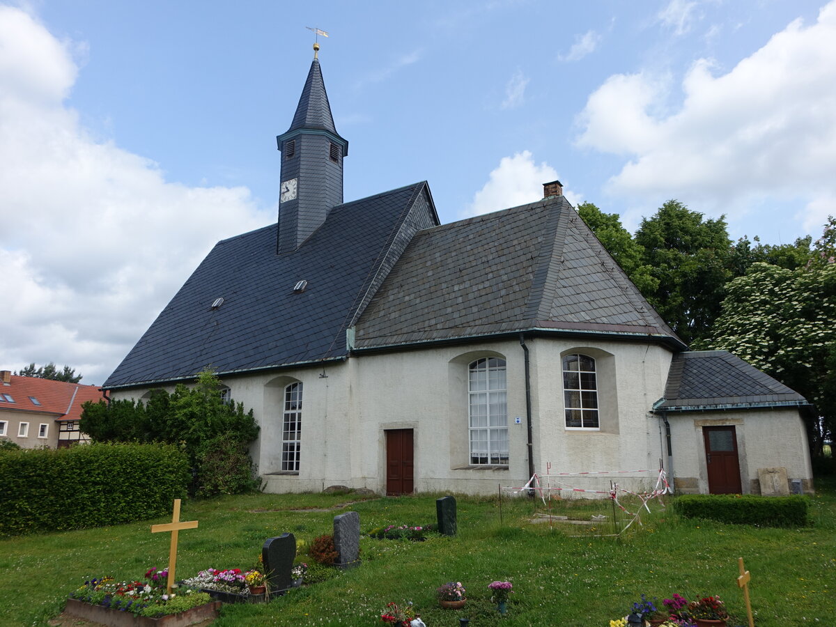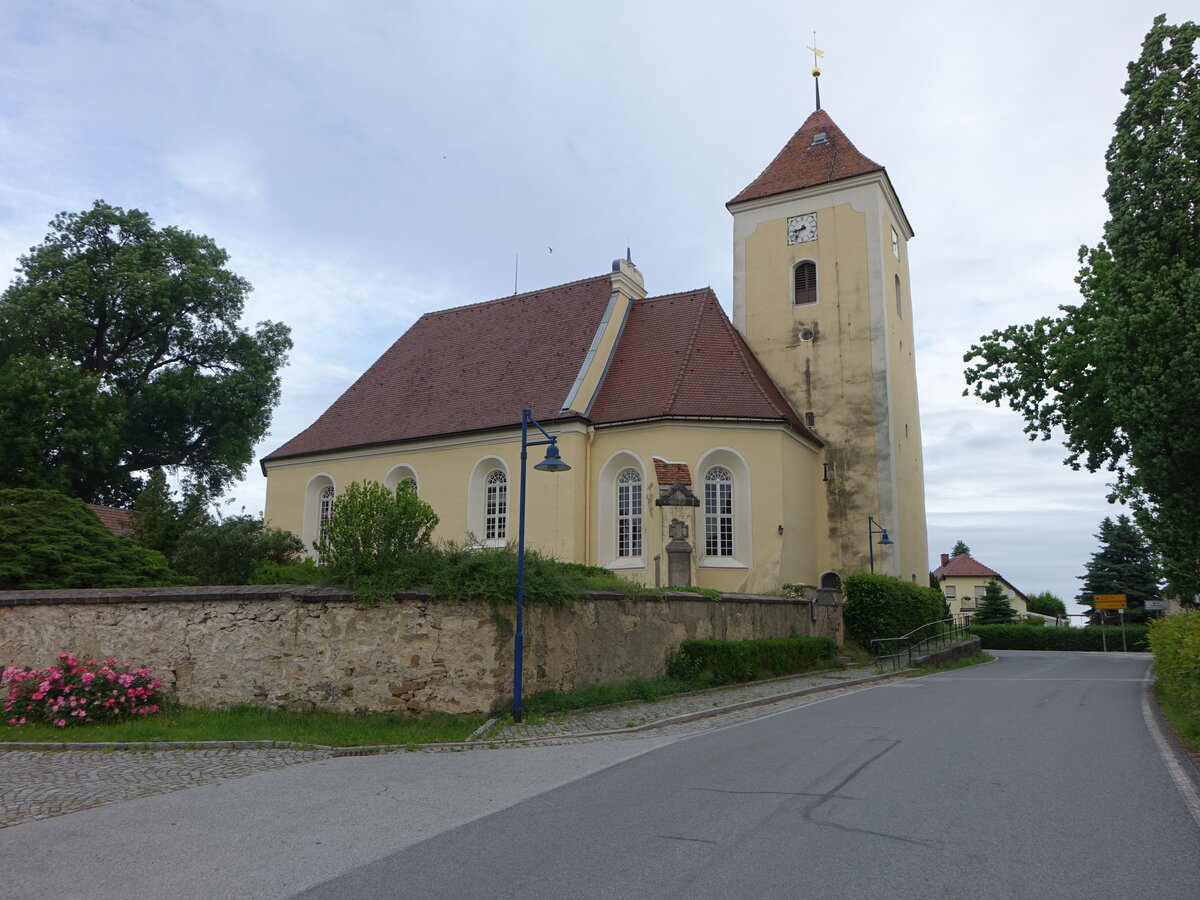 Leppersdorf, evangelische Dorfkirche, erbaut im 15. Jahrhundert (07.06.2025)