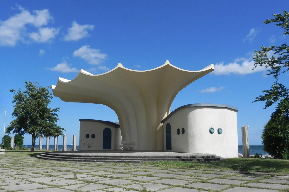 Der Entwurf von Dietmar Kuntzsch wurde 1988 von Ulrich Müther fertiggestellt. Ulrich Müther (* 21. Juli 1934 in Binz) war ein deutscher Bauingenieur, der zu einem bedeutenden Repräsentanten der architektonischen Moderne zählt.