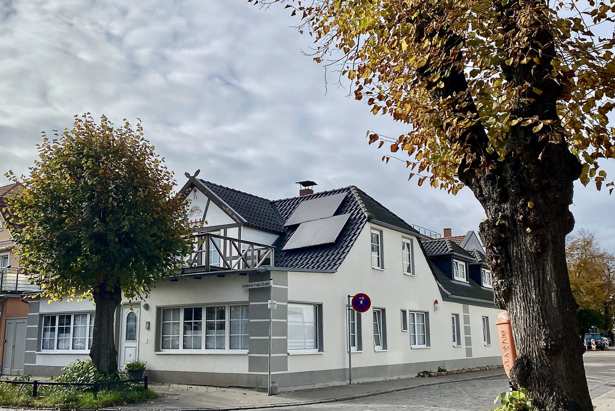 15. Oktober 2025 nahe dem Kurpark hier an der Friedrich-Franz Strasse in Warnemünde.