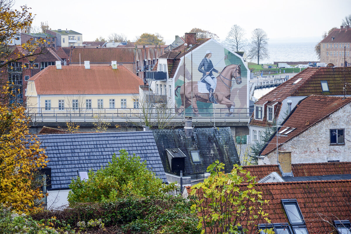 Giebelmalerei in Sønderborg (deutsch Sonderburg) in Nordschleswig. Aufnahme: 31. Oktober 2025.