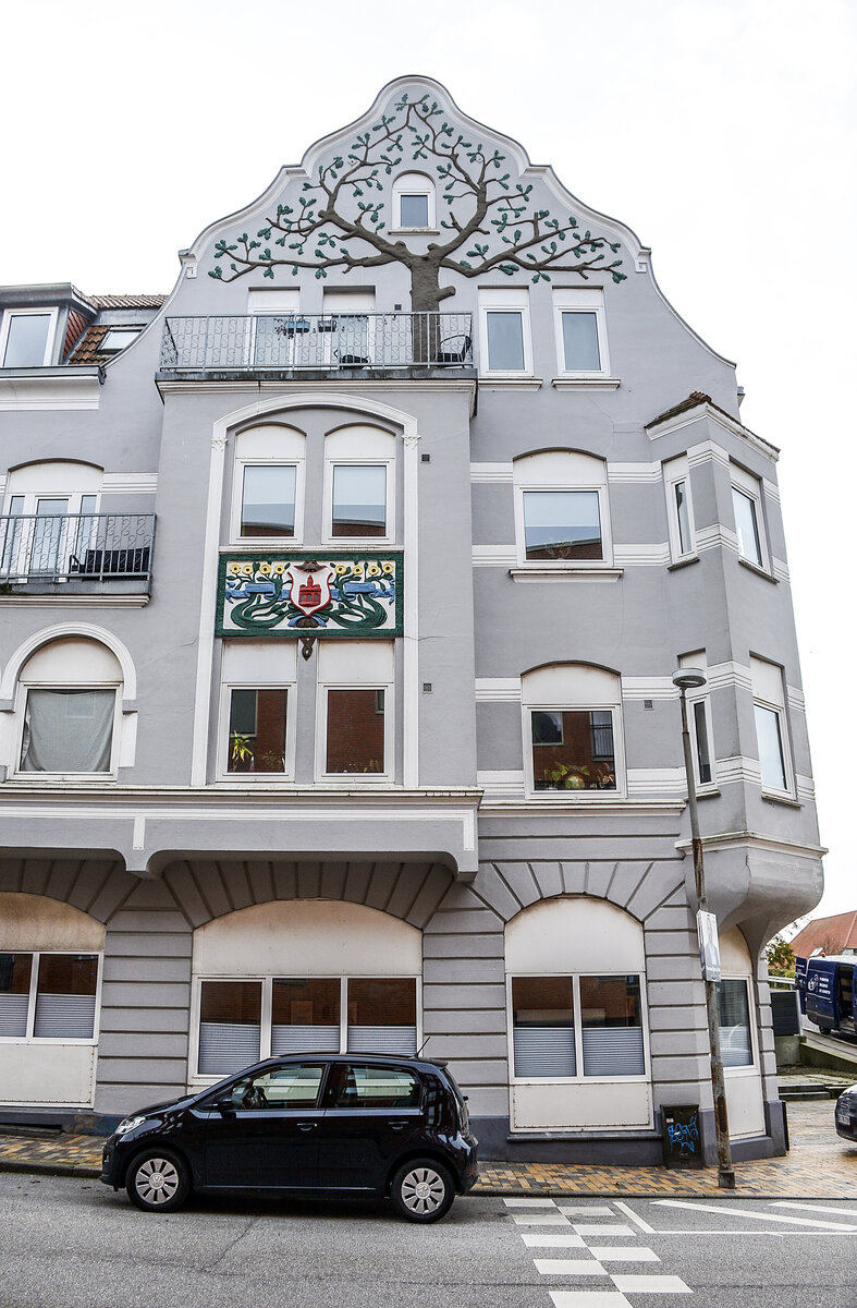 Die nordschleswigsche Stadt Sønderborg ist reich an Jugendstil aus der deutschen Zeit der Stadt vor 1920. Damals hieß die Stadt Sonderburg.Hier ist es die Adresse Helgolandsgade 39.
