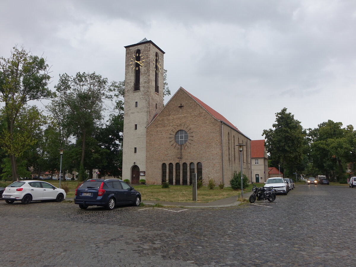 Elstal, evangelische Kirche am Marktplatz, erbaut 1936 (10.07.2025)