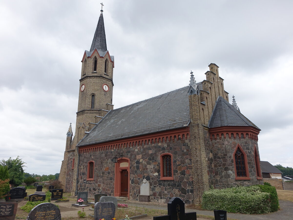 Ketzin, kath. Pfarrkirche Maria Rosenkranzkönigin, erbaut von 1910 bis 1911 durch J. Welz (10.07.2025)