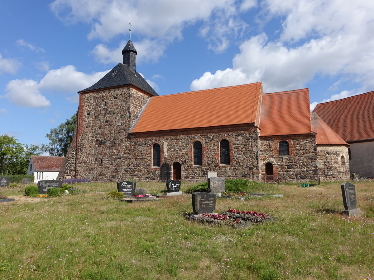 Nedlitz, romanische evangelische St. Nikolaus Kirche, erbaut im 12. Jahrhundert (05.07.2025)