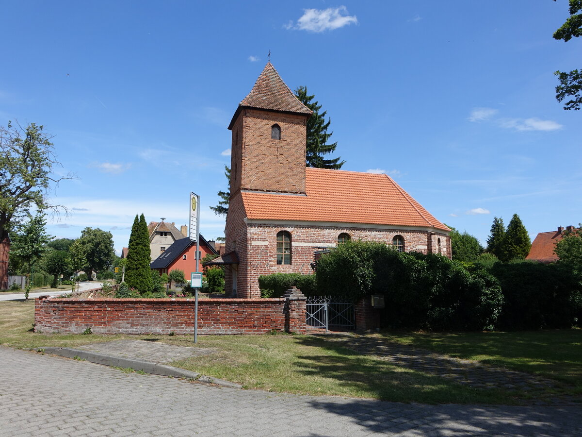 Lübars, evangelische Kirche, kleiner spätgotischer Backsteinbau, verputzt 1883 (06.07.2025)