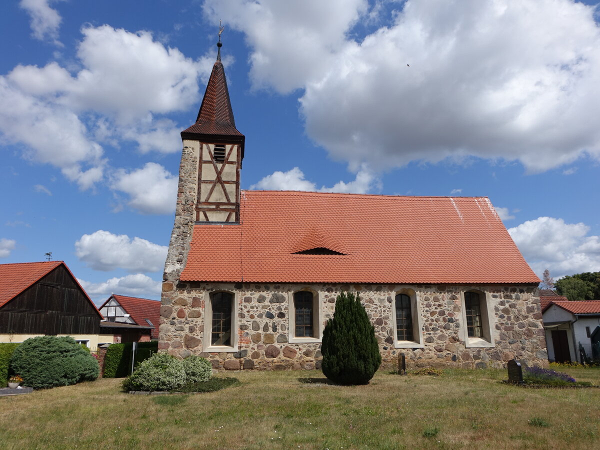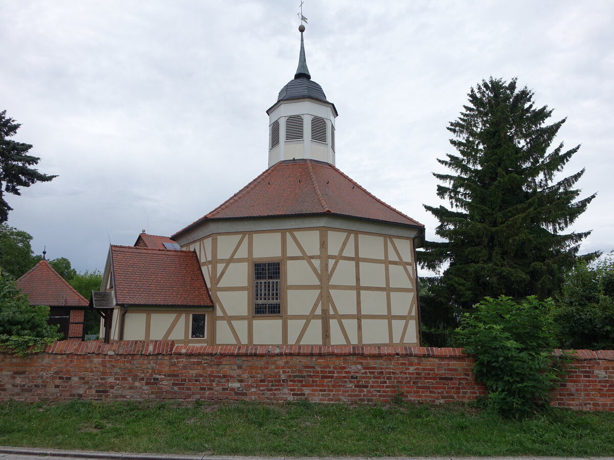 Nedlitz, evangelische Kirche, erbaut 1717 in Ständerfachwerk (05.07.2025)