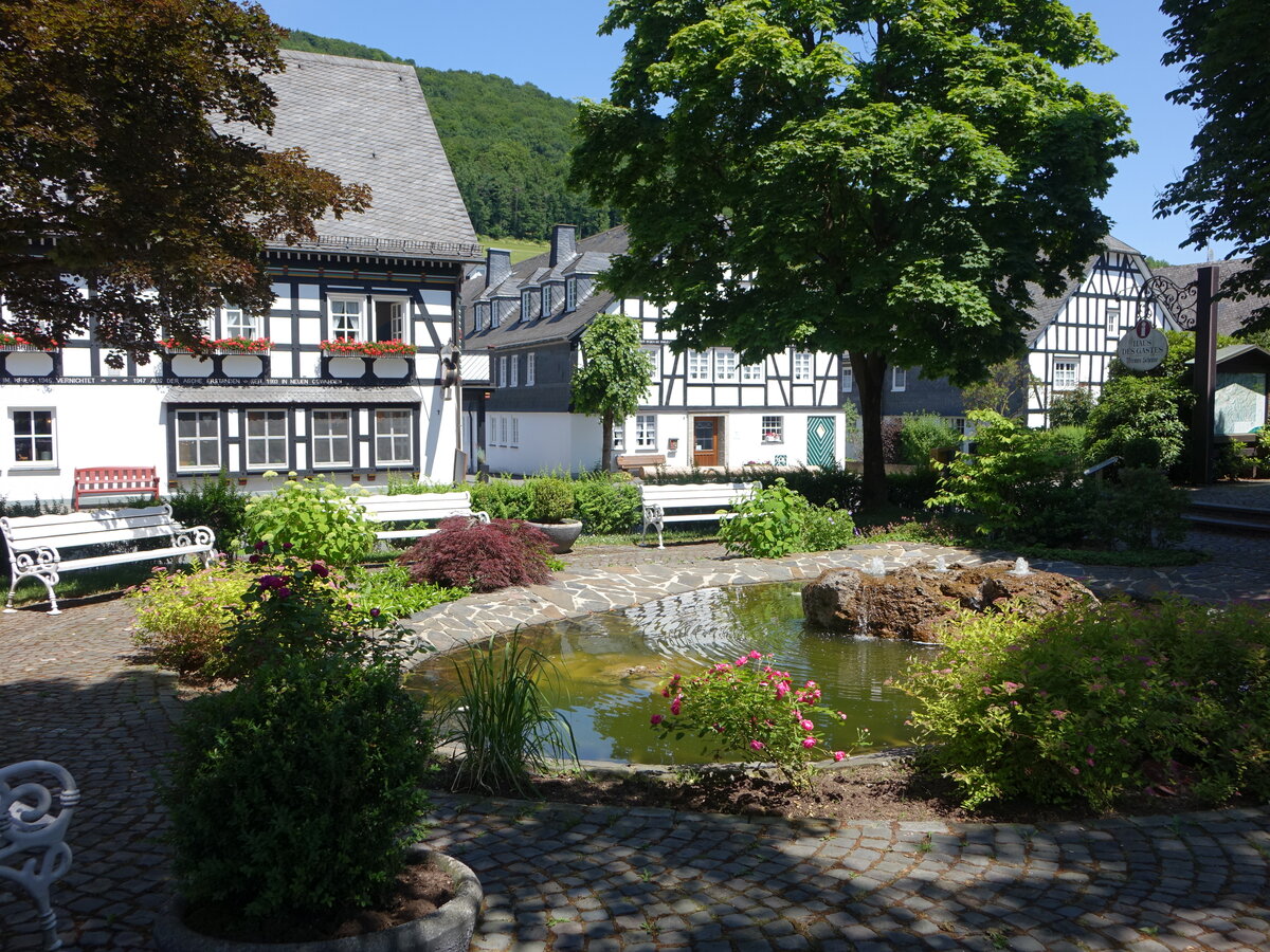 Grafschaft, Brunnen und Fachwerkhäuser in der Straße Zu den Höfen (20.06.2025)