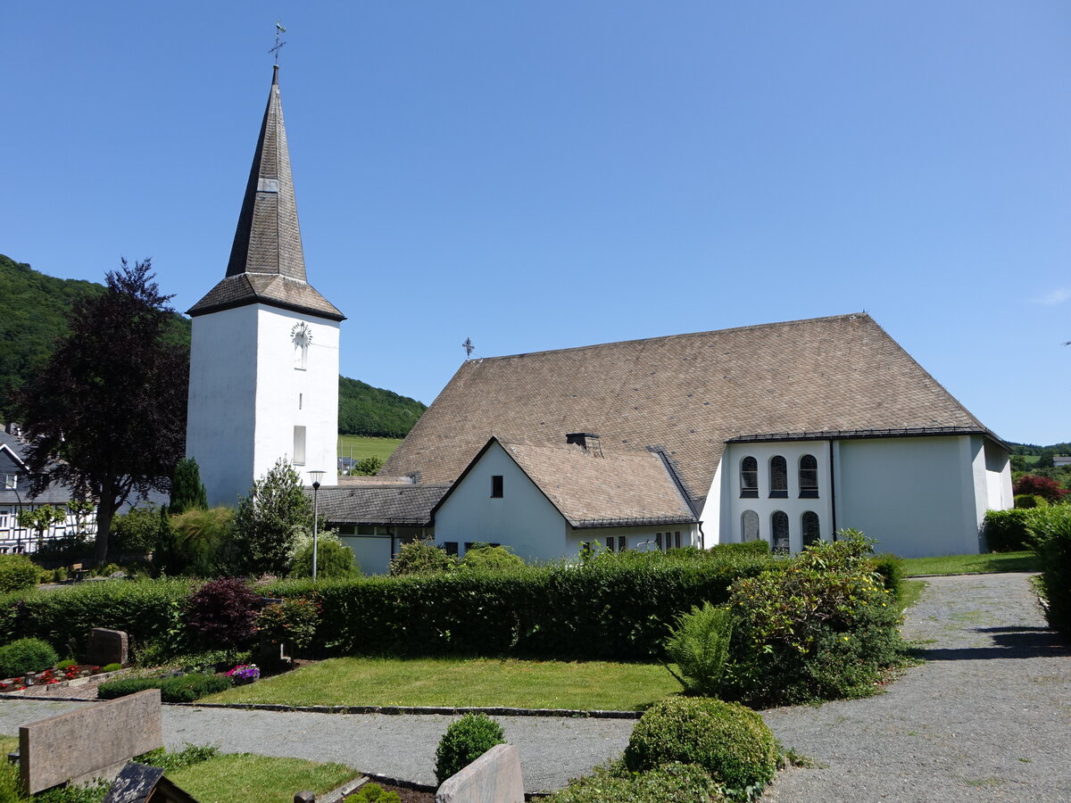 Finnentrop, Pfarrkirche St. Johannes Nepomuk, erbaut 1923 durch den Architekten Franz Schneider (21.06.2025)