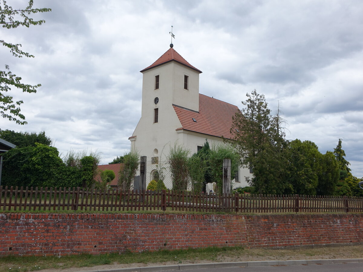 Wenzlow, evangelische Kirche, verputzte Saalkirche aus dem 18. Jahrhundert (05.07.2025)