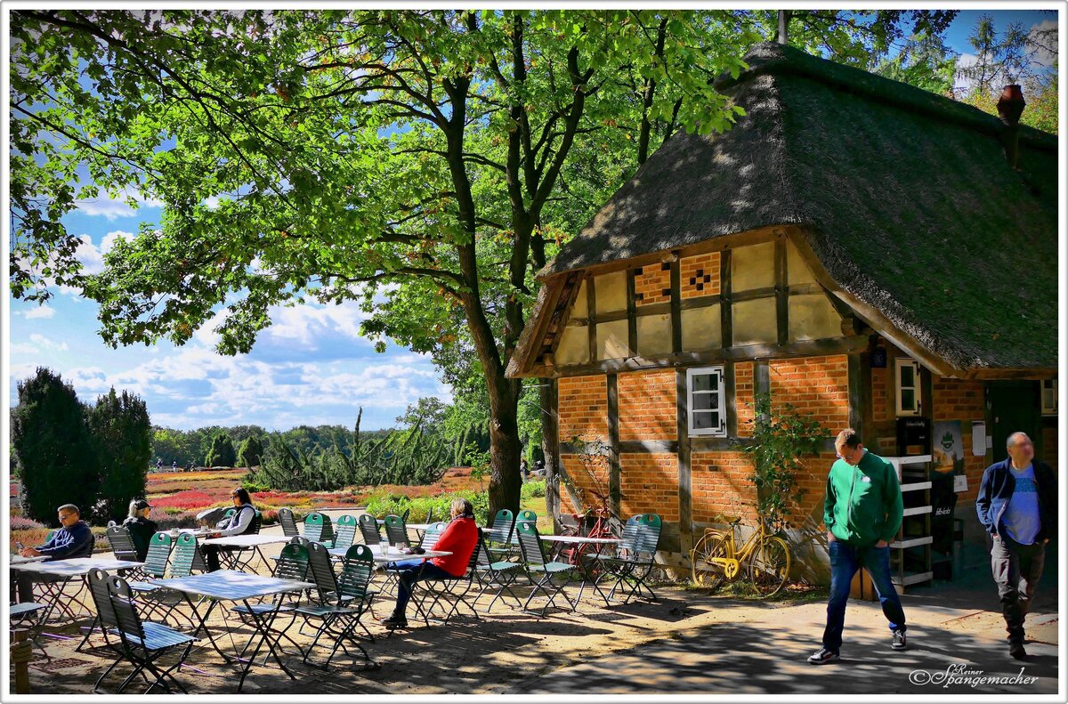 Garten-Café Schneverdingen "Auf dem Höpen". Direkt am Heidegarten gelegen, hier werden Zuchtsorten gepflanzt, die bis in den Oktober blühen.