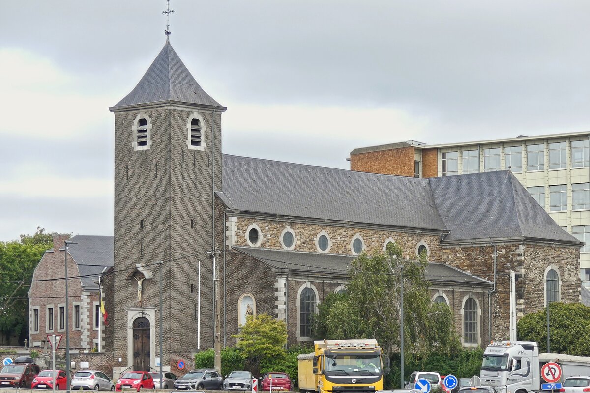 Herstal, Katholische Kirche, an der Pl. Licourt, aufgenommen bei einer Schifffahrt auf dem Albertkanal. 18.09.2025