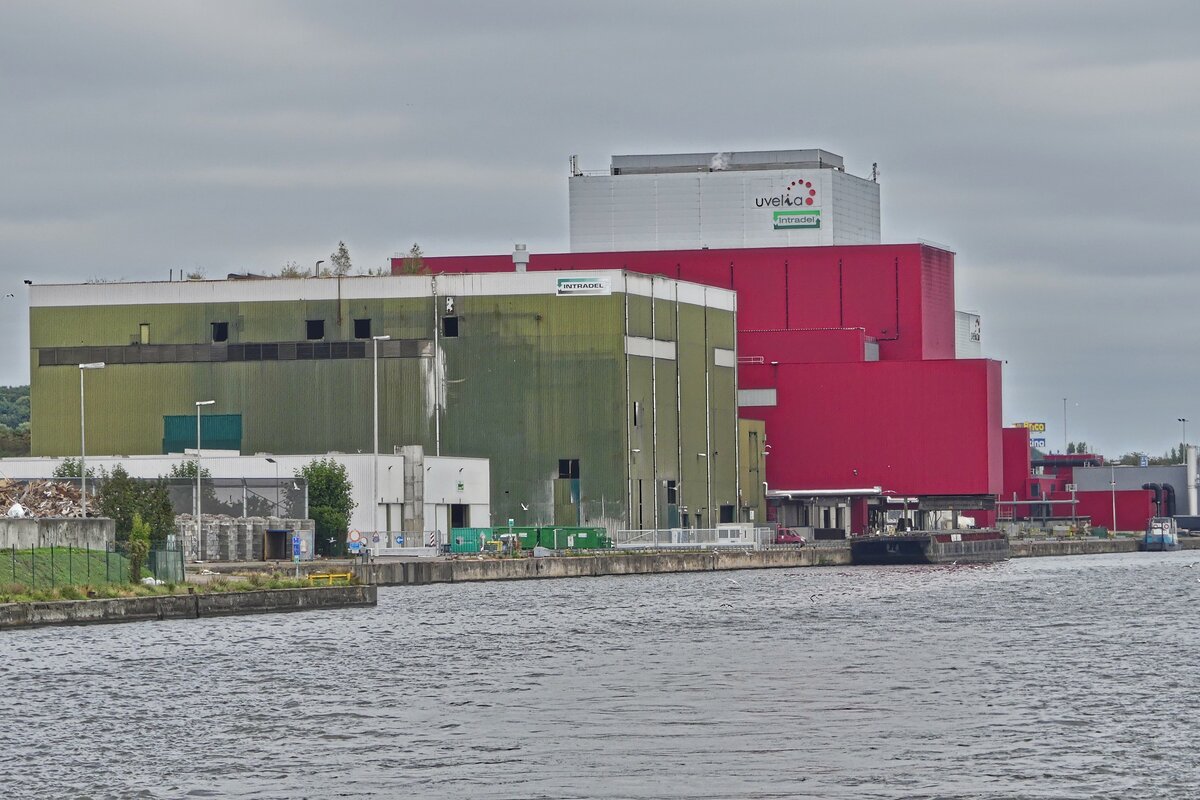 Müllverbrennungsanlage in Herstal bei Lüttich, durch die Müllverbrennung wird Strom für ca 54000 Haushalte produziert, aufgenommen bei einer Schifffahrt über den Albertkanal. 09.2025
