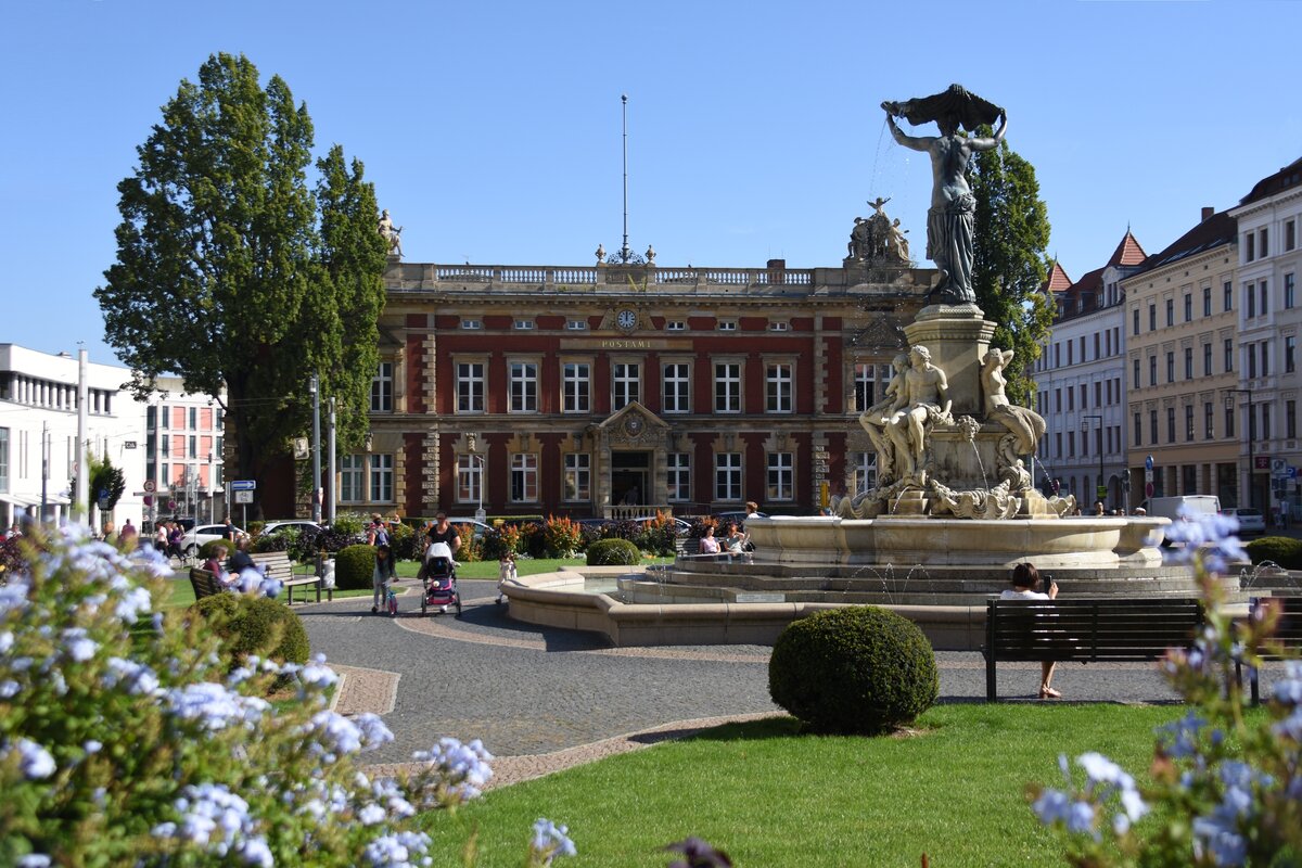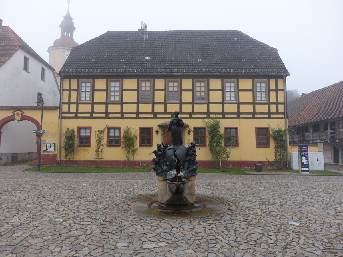 Annaburg, Stifelbrunnen von 1994 und Pfarrhaus am Markt (09.09.2025)