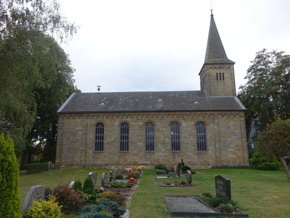 Barbecke, evangelische St. Martin Kirche, erbaut von 1856 bis 1857 im neuromanischen Baustil (13.09.2025)