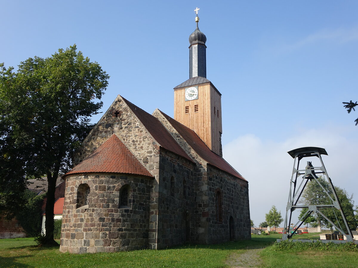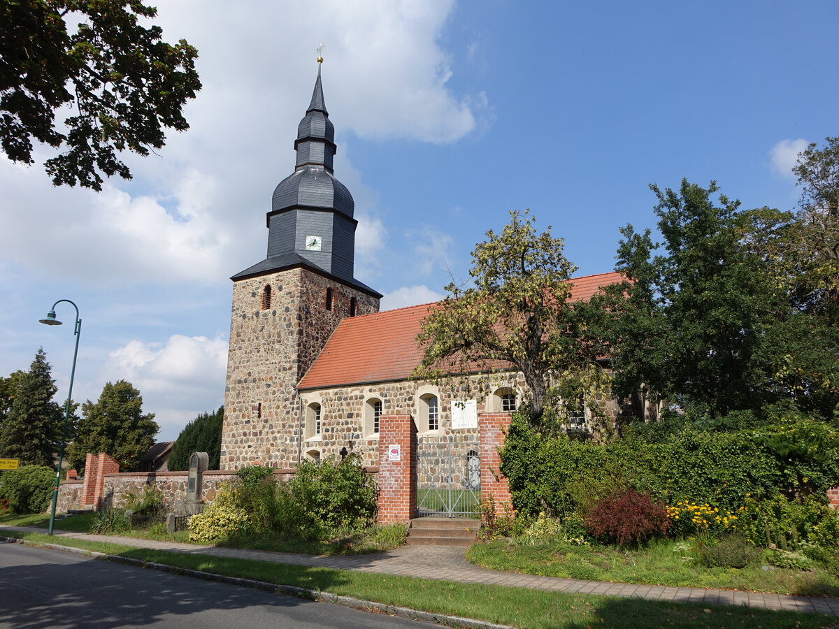 Körbitz, evangelische Kirche, spätromanische Feldsteinkirche, erbaut im 13. Jahrhundert (09.09.2025)