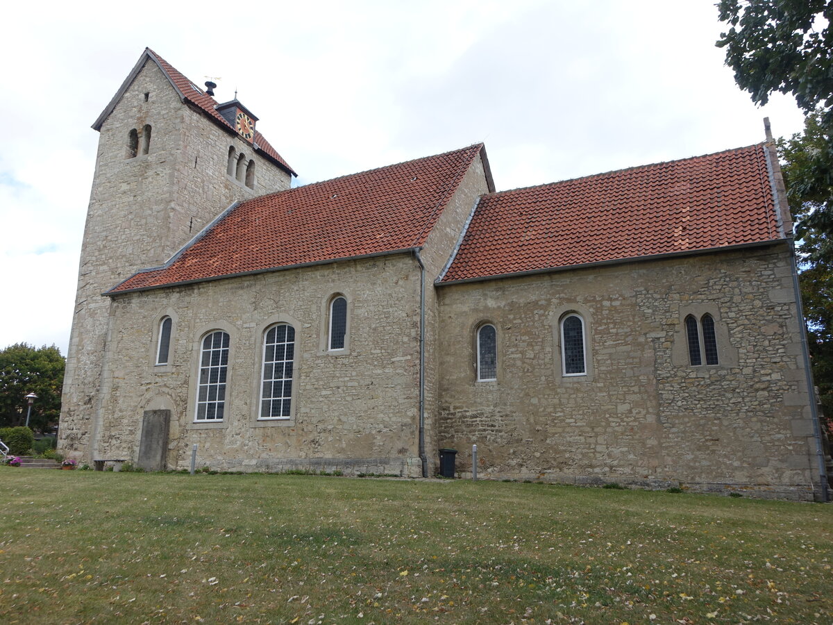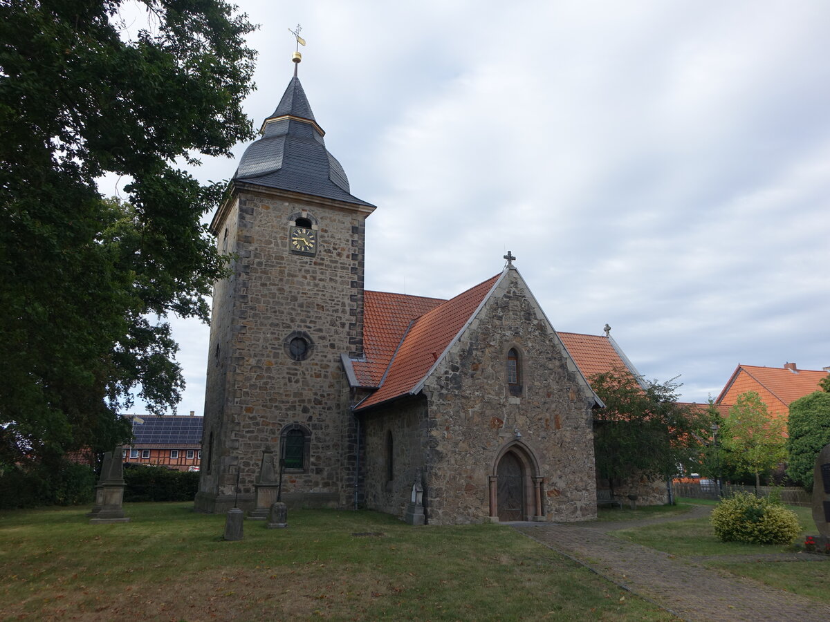 Watenstedt, evangelische Kirche, erbaut im 10. Jahrhundert, Kirchenschiff aus dem 13. Jahrhundert, restauriert bis 1947 (12.09.2025)