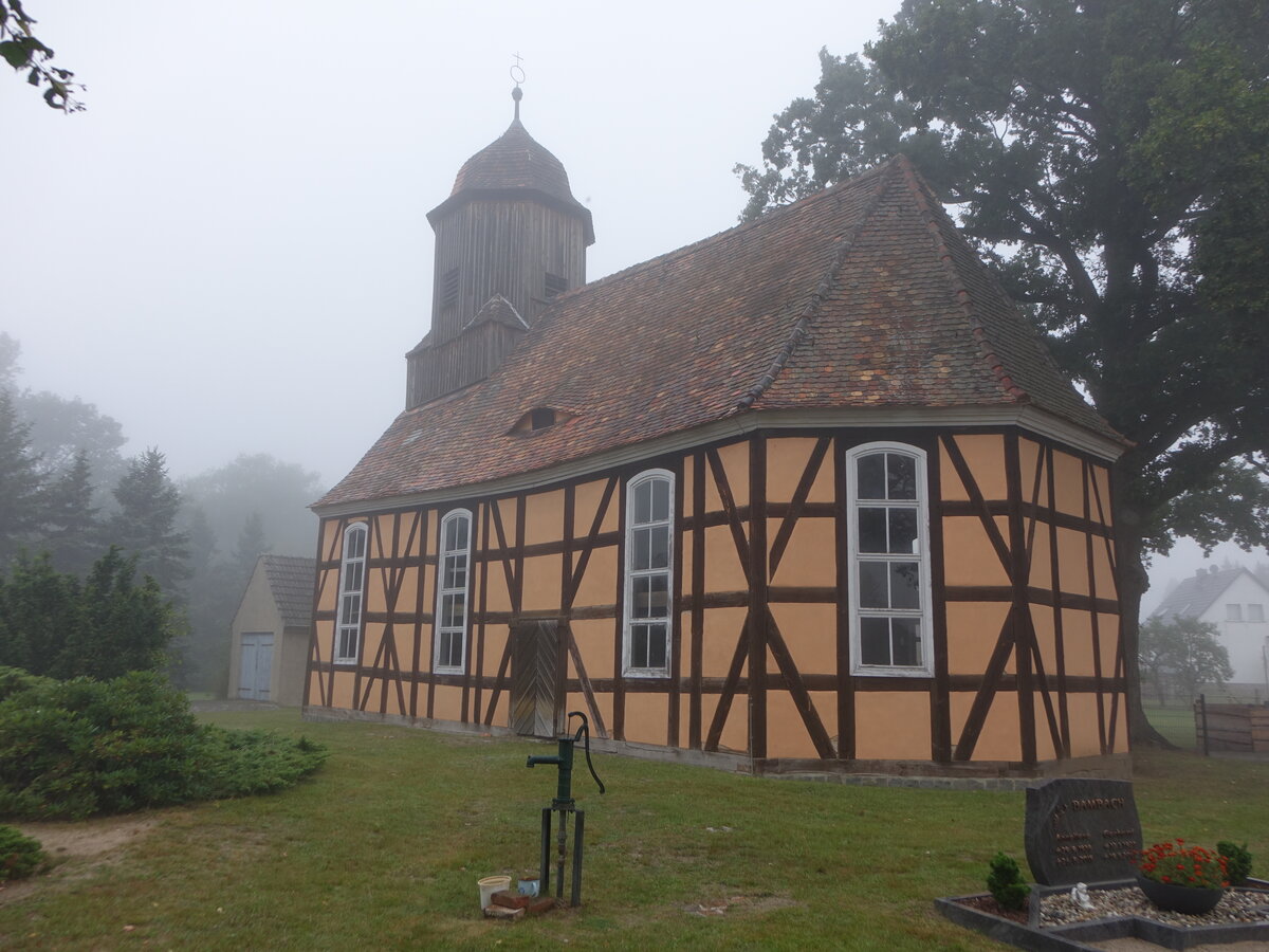 Kremitz, evangelische Kirche, Fachwerkkirche erbaut 1774 (09.09.2025)